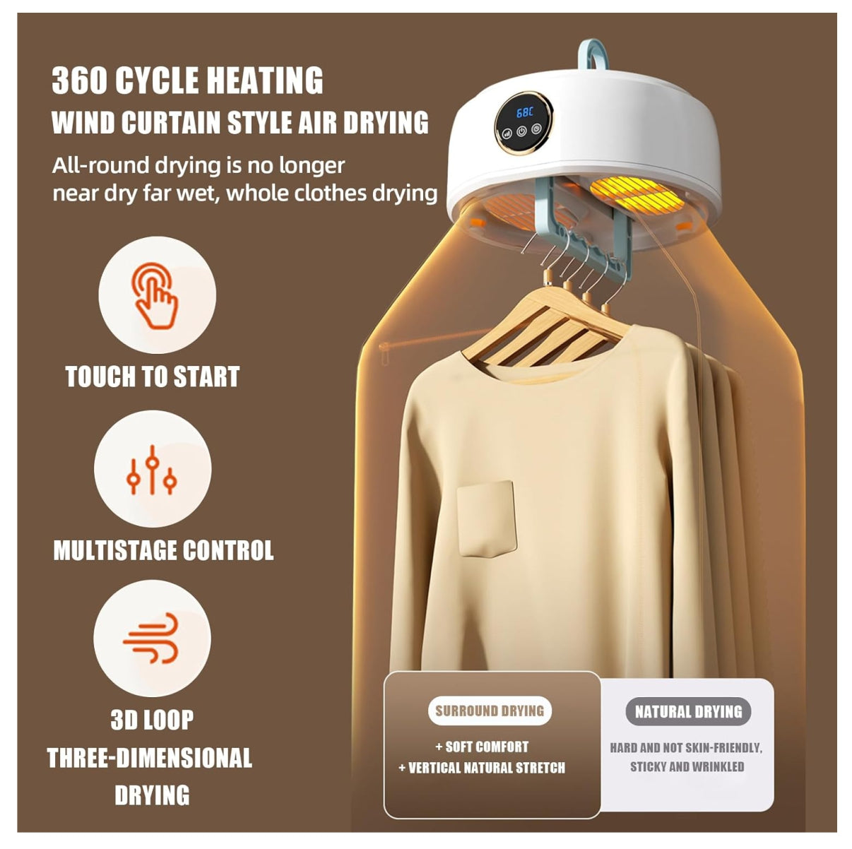 Nuestra mini secadora eléctrica portátil con tecnología de control de temperatura es segura y confiable, a prueba de polvo, ácaros, frío, polillas 5 en 1. El diseño de secado 3D tiene un flujo de aire circulante de 360 grados que seca la ropa rápidamente desde todos los ángulos sin dejar ángulos ciegos o afectar la ropa, y puede limpiar la ropa a fondo.La secadora eléctrica multifuncional no solo seca la ropa, sino que también esteriliza con luz UV. La bolsa de secado incluida en el paquete evita el polvo exterior y otros desechos, y la función UV incorporada limpia profundamente tu ropa, dándoles una limpieza y pureza impecables. Es una solución de secado innovadora que aporta una nueva frescura a tu ropa.Este secador portátil es la solución ideal para sus necesidades de secado con 600 vatios de potencia para secar una amplia gama de ropa, desde vestidos hasta camisetas, chaquetas hasta toallas. El secador eléctrico de 600 W seca suave y eficazmente la ropa húmeda con aire caliente. Más rápido que un tendedero exterior y más barato que un secador convencional.Esta secadora de calefacción tiene 2 velocidades ajustables (modo de cuidado/modo de secado rápido), alta velocidad y baja velocidad, que puede hacer frente fácilmente a todo tipo de situaciones complicadas. Secado tridimensional a temperatura constante de 60 ℃, la ropa está completamente seca, suave y no es fácil de arrugar. Este secador portátil funciona silenciosamente y le permite disfrutar de una experiencia de secado pacífico.Este secador plegable seca eficazmente la ropa y es perfecto para apartamentos pequeños, espacio de lavado limitado, vacaciones o camping. Este secador portátil es lo suficientemente pequeño como para que la bolsa de secado quede dentro de la máquina, y te fascinará con su versatilidad, facilidad de uso, ligereza y movilidad.CARACTERISTICAS:El funcionamiento de la mini secadora es simple con su función de inicio de un botón; solo presione el botón y comience a secar su ropa de manera conveniente y rápidaMini secadoras de ropa adecuadas para varios tipos de ropa, incluida ropa interior de bebé, ropa interior, toallas, etc.adiós a los problemas de secado con esta máquina de secado rápido que también funciona como un armario rápidoLa secadora portátil se puede expandir cuando está en uso y plegar para guardarla cuando no se necesitaEsta secadora de ropa portátil es de tamaño pequeño, liviana y fácil de mover y almacenarCONTENIDO:1 Mini secadora para habitación de apartamentoGARANTIA: 30 días por defectos de fábrica, es decir, si el producto llegó roto o sin funcionamiento. Novedad (Foto o Video donde se evidencie la novedad que indica):Estado del producto:* Debe estar en las condiciones que se recibió, con su empaque original, con las etiquetas, sellos de seguridad, y contar con todas sus partes y/o accesorios. Sin rayones ni manchas. Se recibirá únicamente en óptimas condiciones.